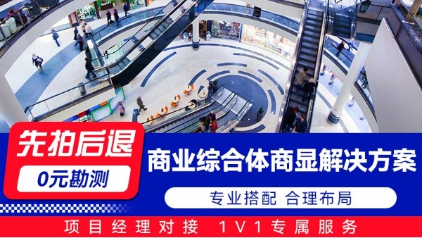 HIKVISION商业综合体商显解决方案背景概述商业综合体是商业显示应用的重要建筑场景。一方面,商业综合体外部天幕、裸眼3D等创意商显的应用,能够为商业综合体带来客流增长、营收增长及物业增值的效果;此外,对于商业综合体消控中心、运营中心的可视化升级改造,超长